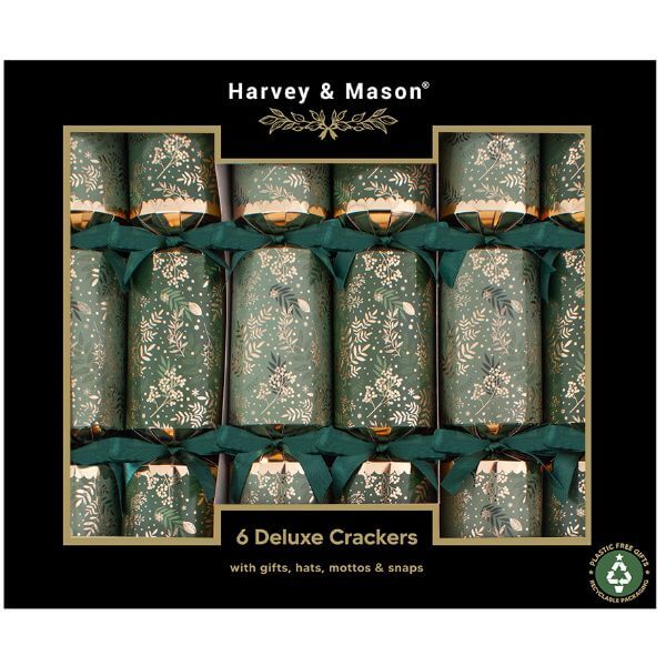 Make your Christmas feast truly unforgettable with the natural beauty and delightful surprises of our Harvey & Mason® Deluxe Green Foliage Christmas Crackers!