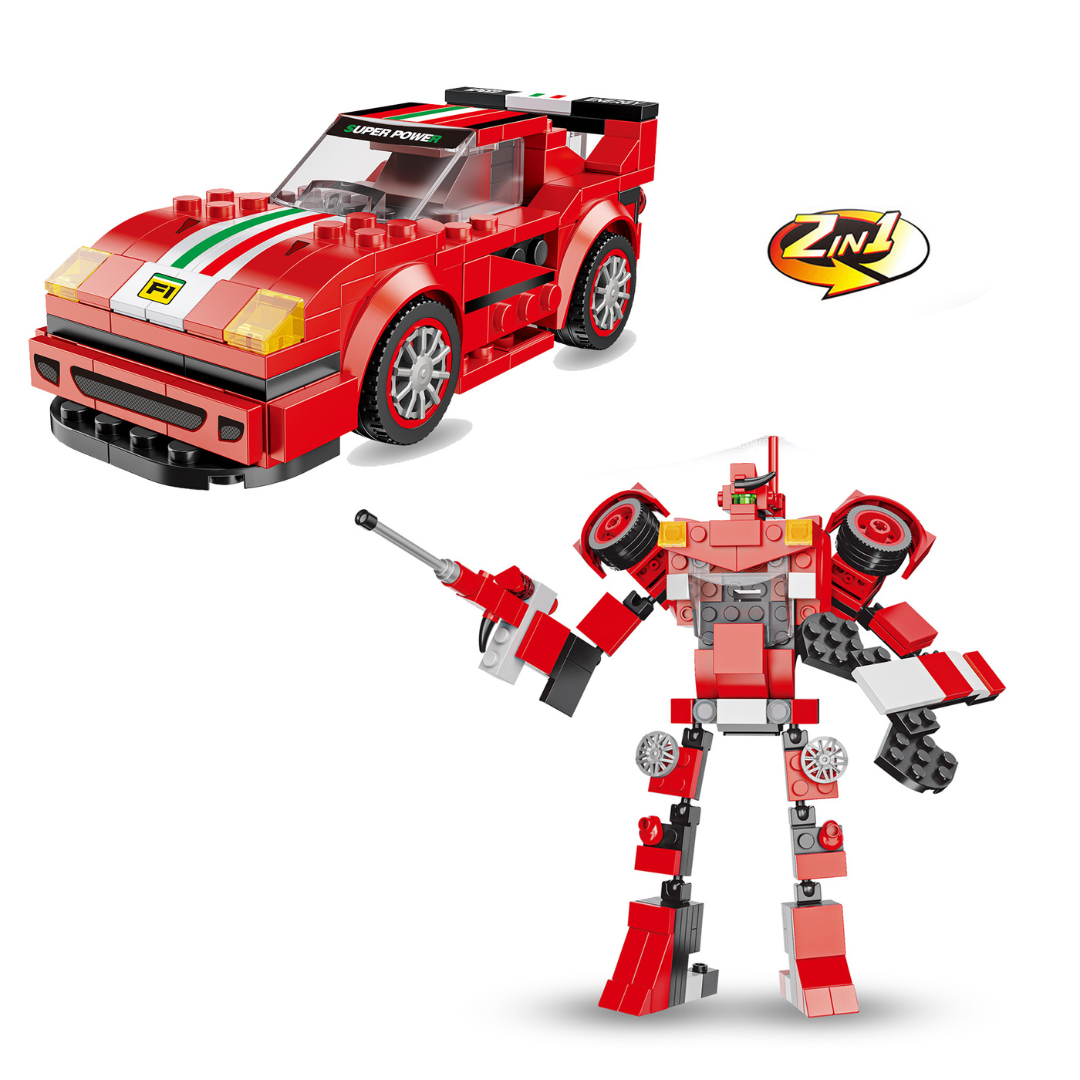 2-in-1 Transformable Design: Build a vibrant red racing car and then transform it into an impressive robot, providing versatile play options.