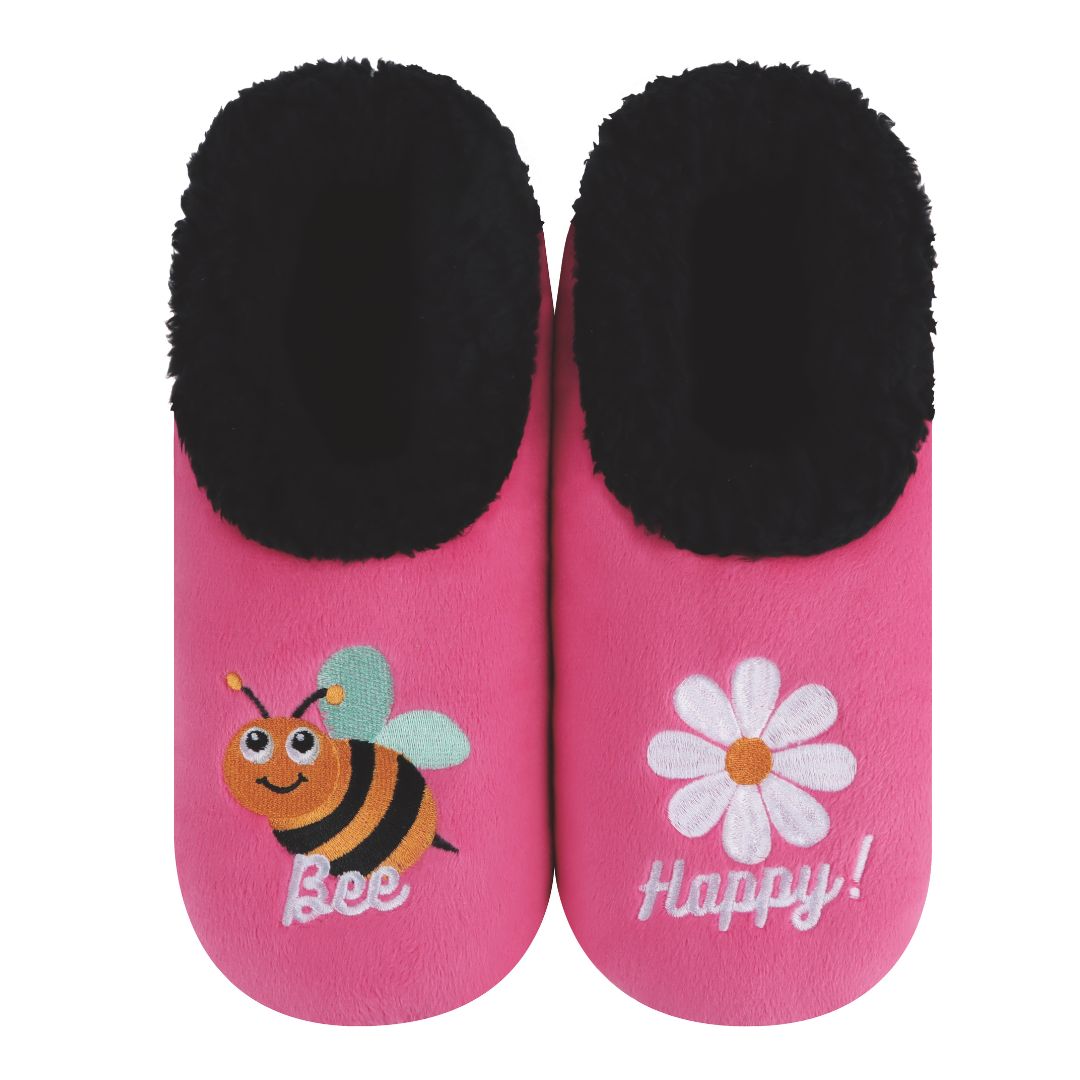 Snoozies Womens Fleece Slippers – Bee Happy (Vibrant Pink/Black)