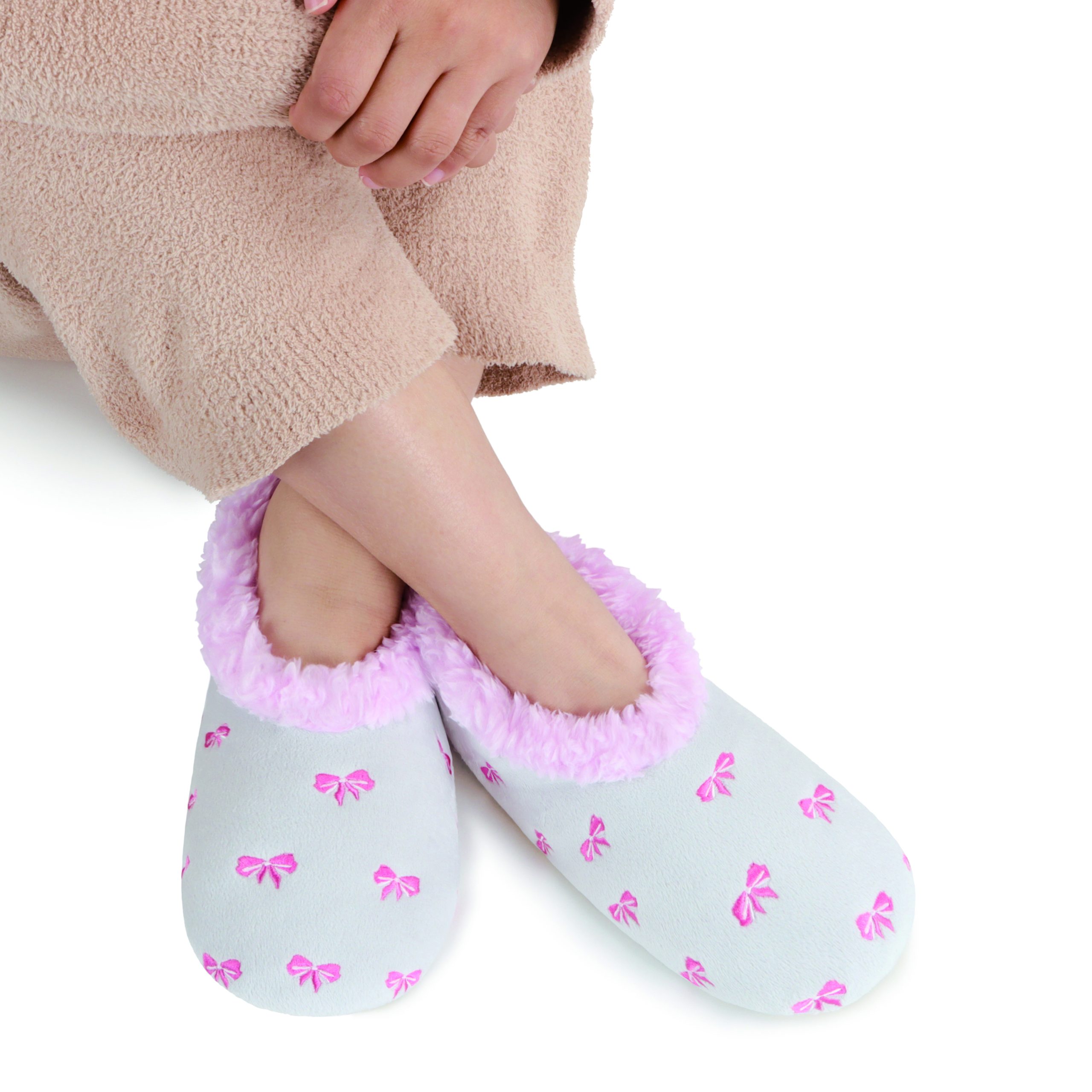 Snoozies Womens Fleece Slippers Bow-Tiful Grey