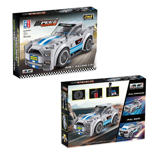 Speed Racing Car Building Blocks Grey 194 Pc 2-in-1